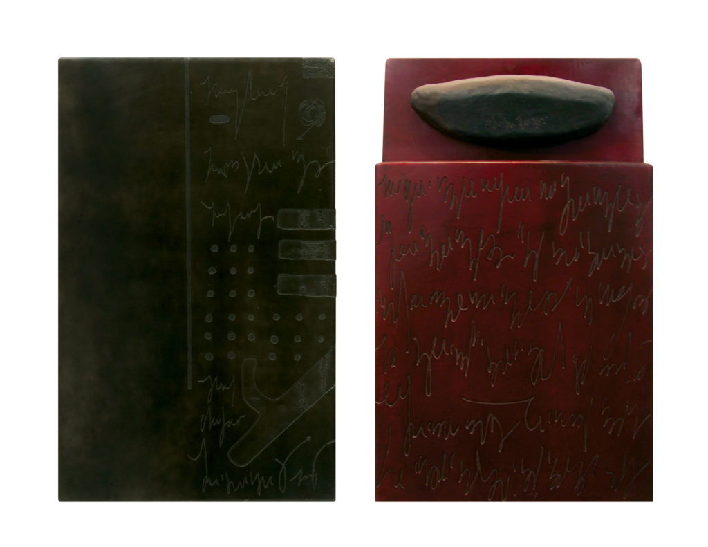 80 x 50 x 10 cm c/u. Bronze and high temperature ceramic, 2007.